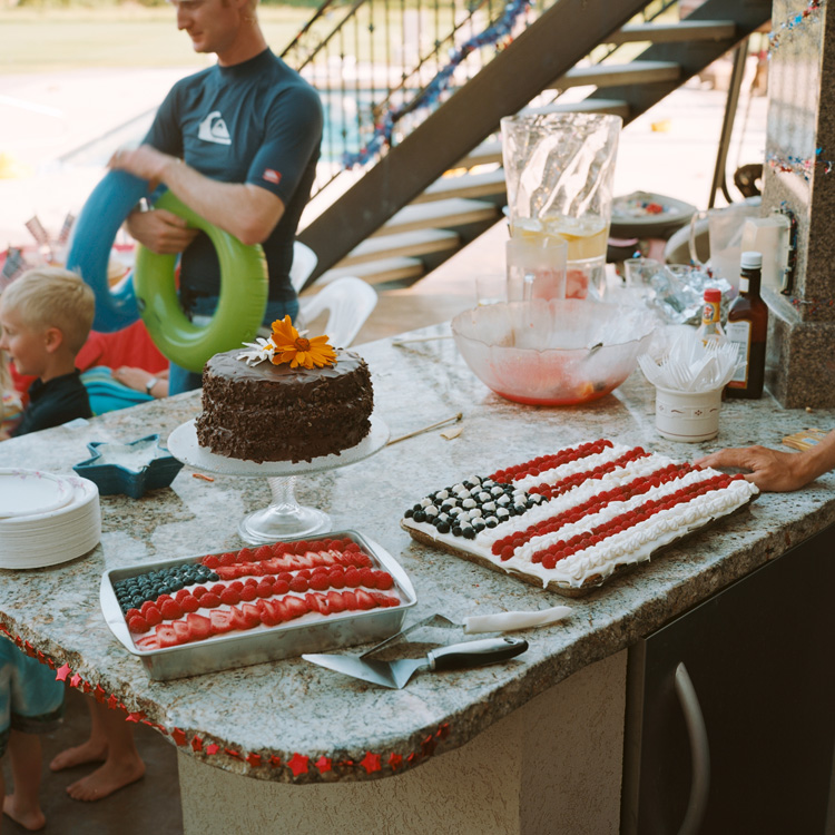 The 4th of July is a magical day to me. The long day, the heat, the friends, family and BBQ. Finally, the fireworks that make the day so exciting. My wifes annual flag cake expresses patriotism and committment to her family. We love it.