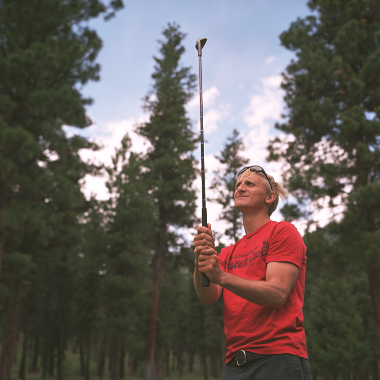 I gathered those of us who played the game for a group shot. Justin always finds the most unique ways to pose in a picture. Here he is face down doing the deadman. His pose certainly adds a strong horizontal element to the photograph. If you zoom in you can see his eye through the blades of grass.