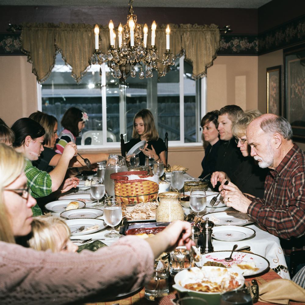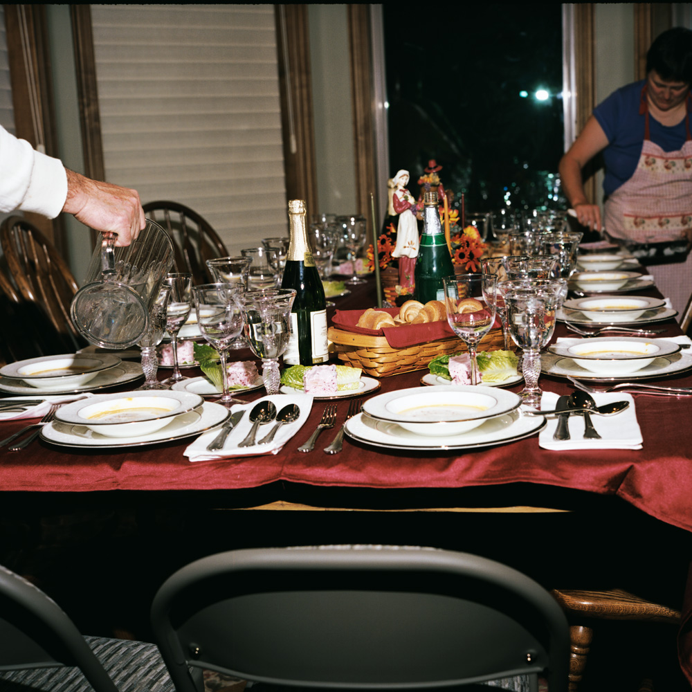 When I was a kid I ate turkey on cheezy paper plates with breakable forks on a flimsy pea green card table at Thanksgiving.