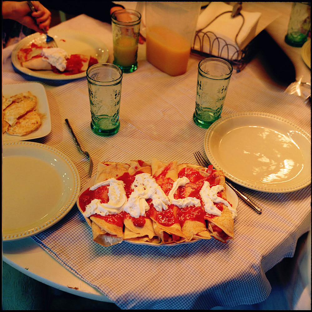 On Jack’s birthday Sam woke up early and prepared his favorite breakfast, strawberry crepes.