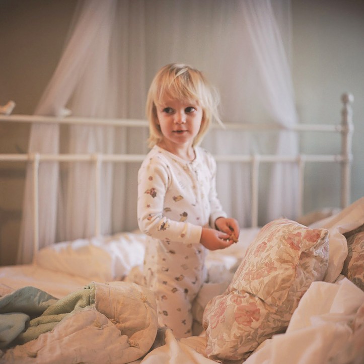 The light from two banks of windows in our bedroom is hitting both of Lily’s soft cheeks. It is creating what I used to consider the ultimate portrait lighting: Double edge lights.