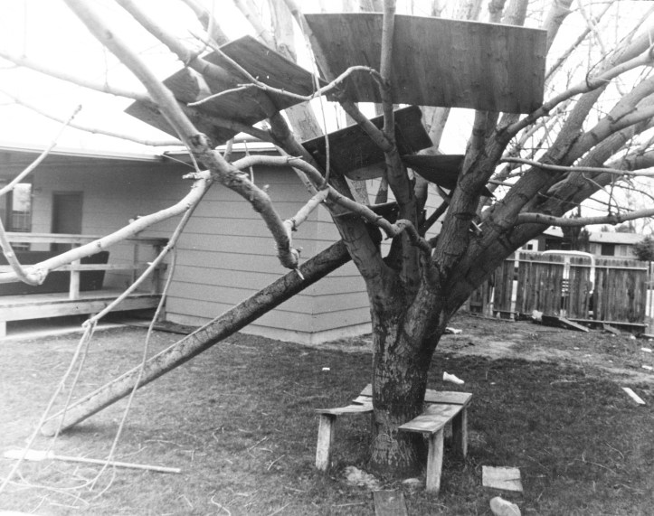 I was focused on photography and skateboarding and candy and fun and entertainment. My younger brothers were focused on building a tree house in the backyard. I know, it looks like the tree house is very dangerous, and it was, but my brothers loved it. The beam that leads to the first floor of the treehouse was my Sisters gymnastics balance beam. It was such a handy device to have around.