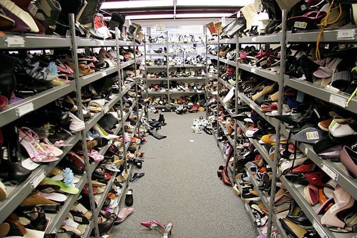 It’s kind of sad. These shoes were once new, exciting footwear. Now they’re like a room full of lost orphans. It’s not as bad as a garage sale but it’s close.
