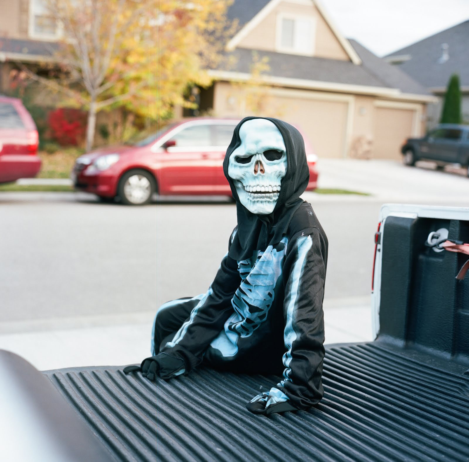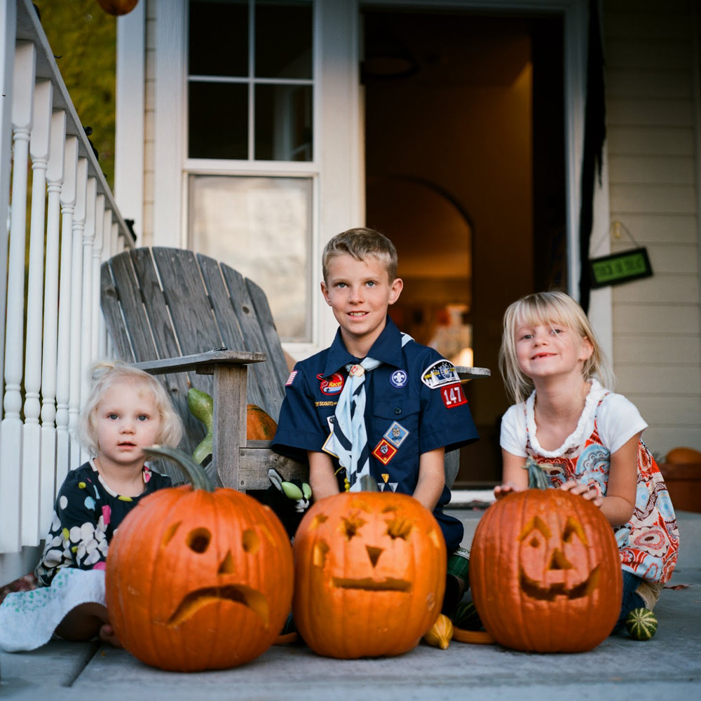 The front porch at the house. Sam pulled out all the decor and had a great time creating a mood with the kids. That tree to the left side of the frame was so red that it startled me a few times.