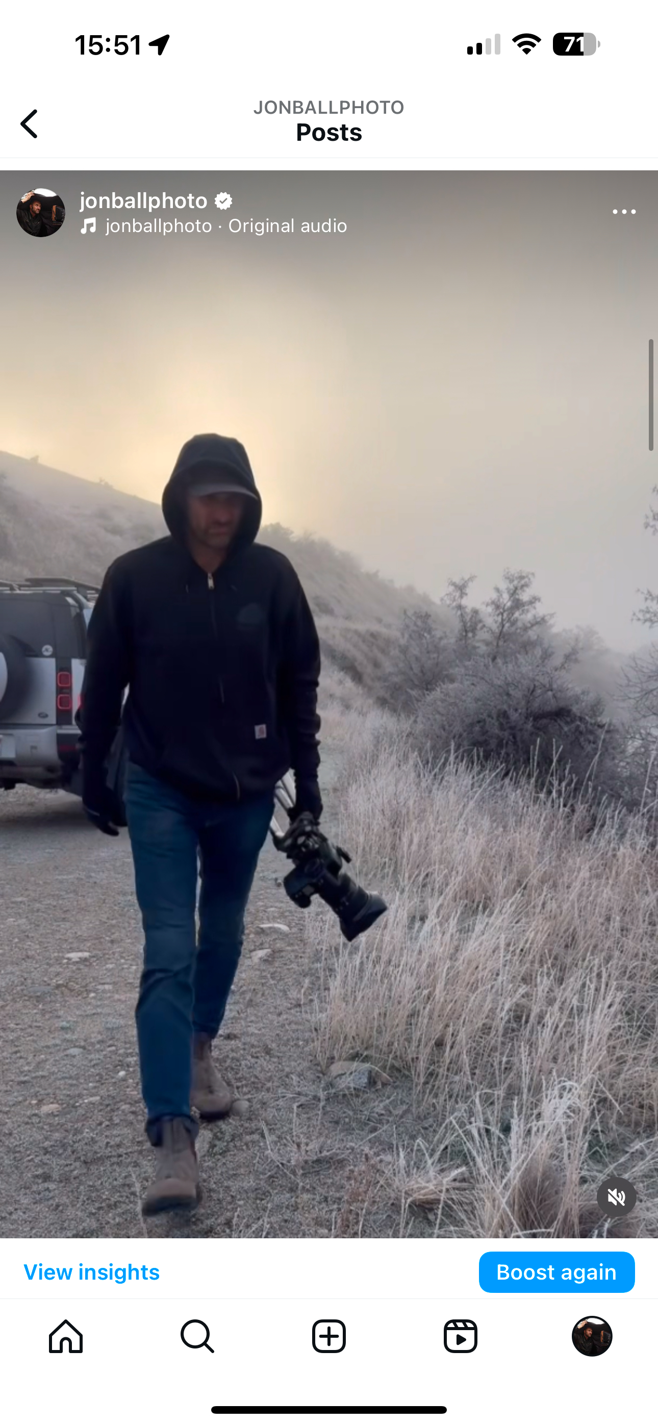 I setup my iPhone on a tripod with a special fitting for phones and recorded myself walking from the car to my spot with my camera on my shoulder. Then I did a video of myself shooting a photo and looking at it on the screen. Next, I edited the image in Photoshop and recorded it from my computer screen. Then I put all that footage into iMovie and made a vertical video. Finally, I recorded an audio voiceover to narrate the scene. It was fairly easy. YouTube helped. The entire process took about an hour.